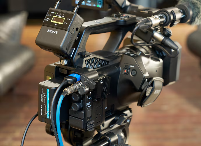 PXW-Z300 hỗ trợ ghi âm 4 kênh thông qua cổng XLR và Multi Interface Shoe, kết nối mic shotgun, mic không dây hoặc các thiết bị âm thanh chuyên nghiệp khác. Máy có đầy đủ các kết nối SDI, HDMI, LAN, Timecode in/out, Genlock, phù hợp với môi trường studio, live broadcast và multi-camera setup. Thiết kế V-Mount cho phép gắn thêm phụ kiện như transmitter, pin rời hoặc bộ thu âm, giúp tối ưu hóa khả năng quay ngoài hiện trường hoặc livestream.